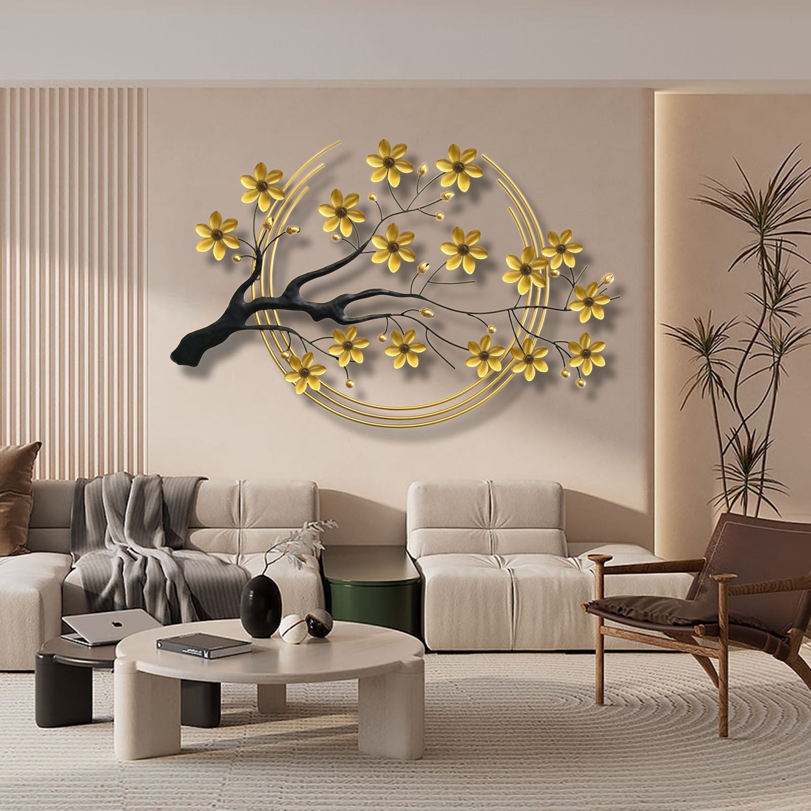 Large Metal Floral Wall Art Decor, Luxury 3D Handmade Metal Gold Flowers Wall Sculpture, Home Wall Decoration